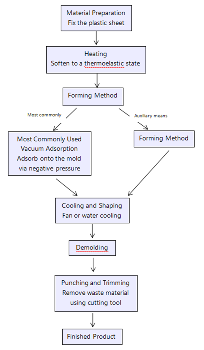 મુખ્ય સિદ્ધાંત: પ્લાસ્ટિક શીટને ગરમ કરો અને નરમ કરો, પછી તેને ઘાટની સપાટી પર શોષવા માટે વેક્યૂમનો ઉપયોગ કરો, અને તે ઠંડક પછી આકાર લેશે.
